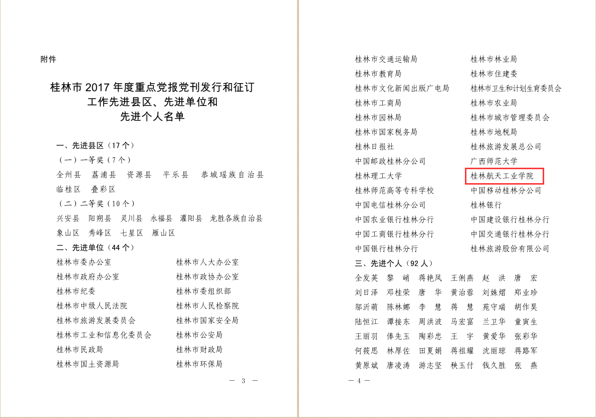 近日,桂林市委宣传部印发《关于表扬2017年度重点党报党刊发行和征订工作先进县区、先进单位、先进个人的决定》,我校获评“2017年度重点党报党刊发行和征订工作先进单位”,郭世军同志获评“2017年度重点党报党刊...