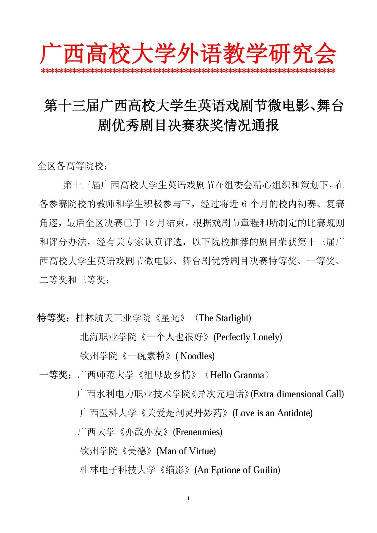 2018-01我校作品在第十三届广西高校大学生英语戏剧节优秀剧目决赛中...