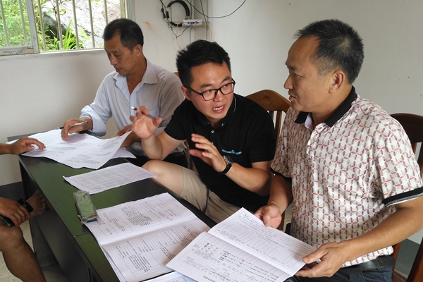 我校驻村“第一书记”杭盖(中)向村民讲解扶贫政策“您慢点讲,我有点听不懂您说的话”、“这个政策不仅仅是补助2000元钱,更是发展产业的动力”、“请各帮扶单位重视并督促帮扶人核实情况填好相关表格发给我”...
