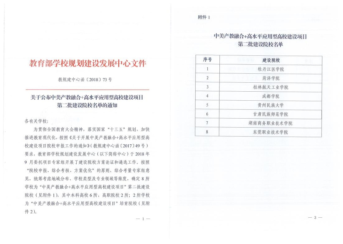 2018-10【喜报】我校被确立为教育部第二批中美产教融合+高水平应用型...