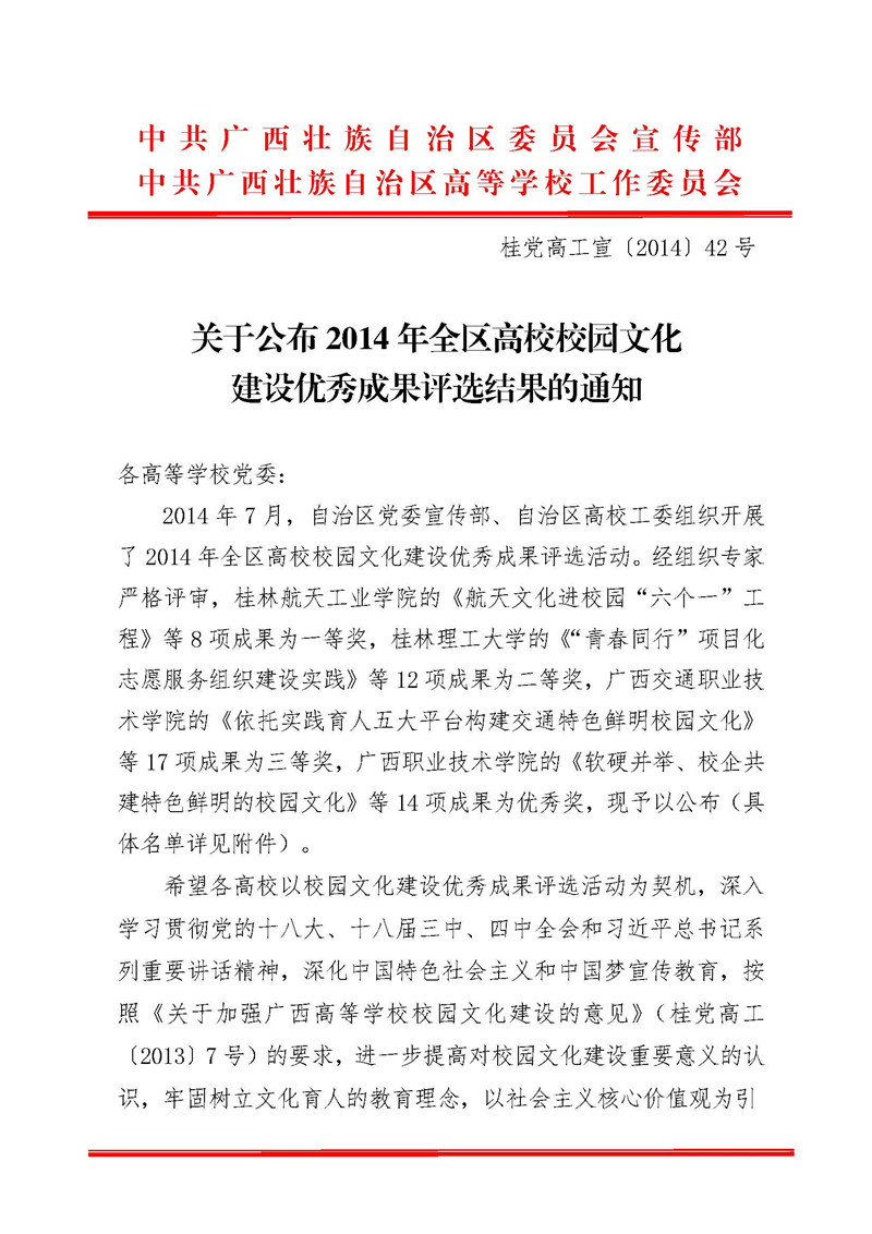 2015-01【喜讯】“航天文化进校园‘六个一’工程”荣获广西高校校园...