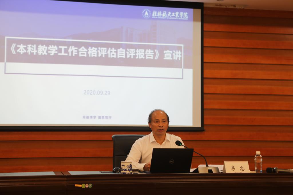 为进一步凝聚共识和全力推进学校本科教学合格评估工作,9月29日下午,我校本科教学工作合格评估自评报告宣讲会在飞天520会议室召开,校长易忠主持并作专题辅导。学校领导及全体中层领导干部参加学习。会上,易...