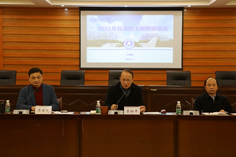3月11日上午,我校在飞天楼520会议室召开在读博士教师座谈会。党委书记李幼平,校长易忠,副校长吴世先出席,人事处、教务处、科技处负责人及49位在读博士教师参加座谈会,会议由副校长吴世先主持。座谈会上,易...