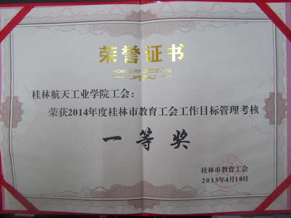 2015-04我校工会获桂林市教育工会目标管理考核一等奖