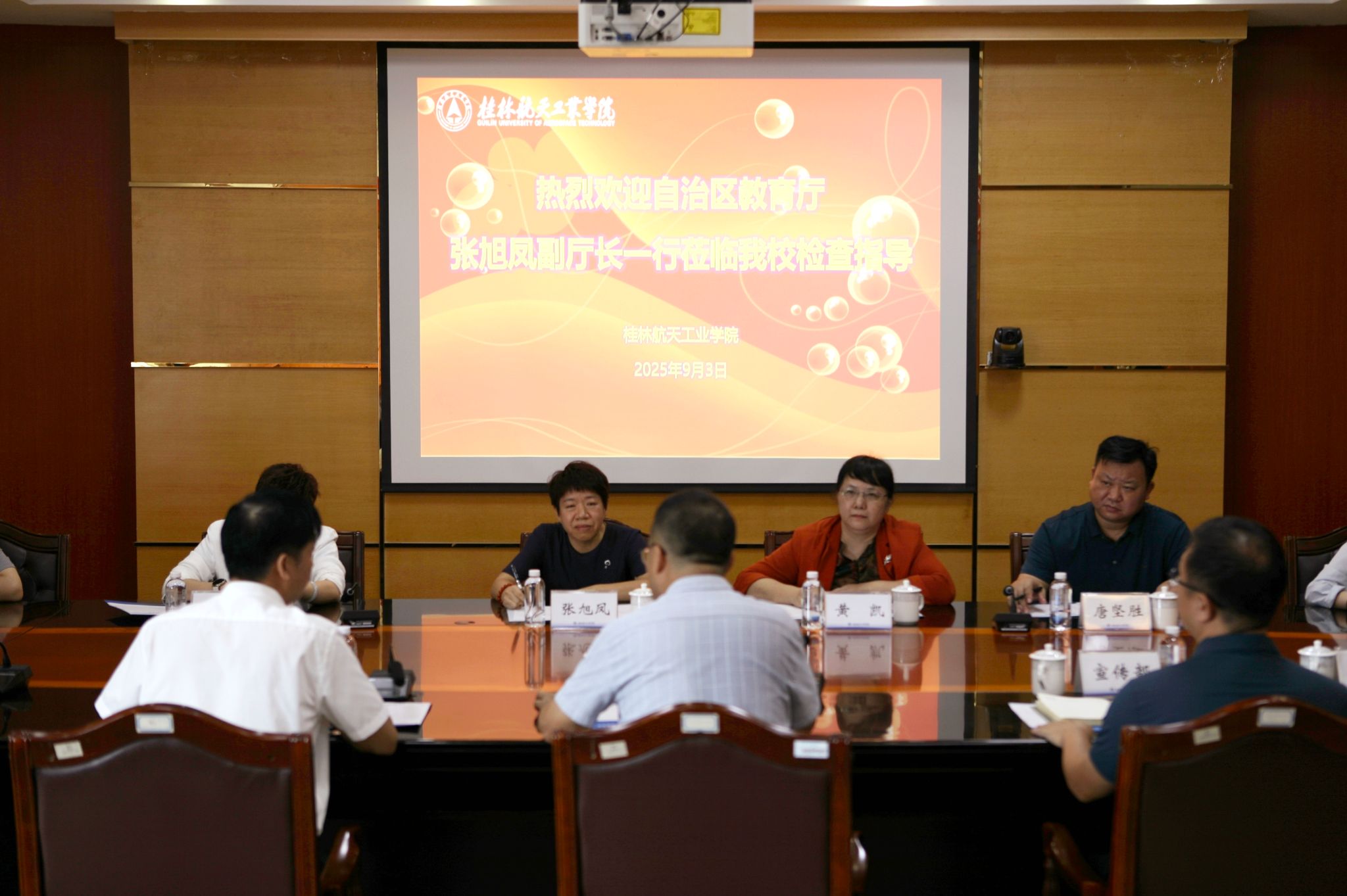 9月3日上午,自治区教育厅副厅长张旭凤一行到我校开展2025年秋季学期开学调研工作,自治区教育厅相关处室领导和桂林市教育局工作人员陪同调研。调研工作座谈会在飞天楼520会议室召开,会议由党委副书记、校长吴尽...