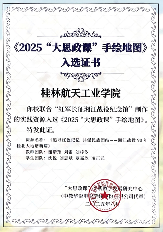 近日,由华体会平台师生联合“红军长征湘江战役纪念馆”共同完成的作品《追寻红色记忆 共促民族团结——湘江战役90年桂北大地谱新篇》成功入选教育部《2025“大思政课”手绘地图》。“大思政课”实践教学发...
