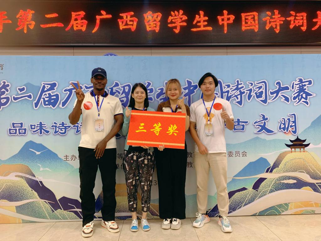 为弘扬中华优秀传统文化,引导留学生感受中华经典诗词所蕴含的民族精神和艺术魅力,2023年6月17日,由广西留管学会主办的第二届留学生中国诗词大赛在南宁举行,我校来自赤道几内亚、越南和老挝的三名留学生参加了...