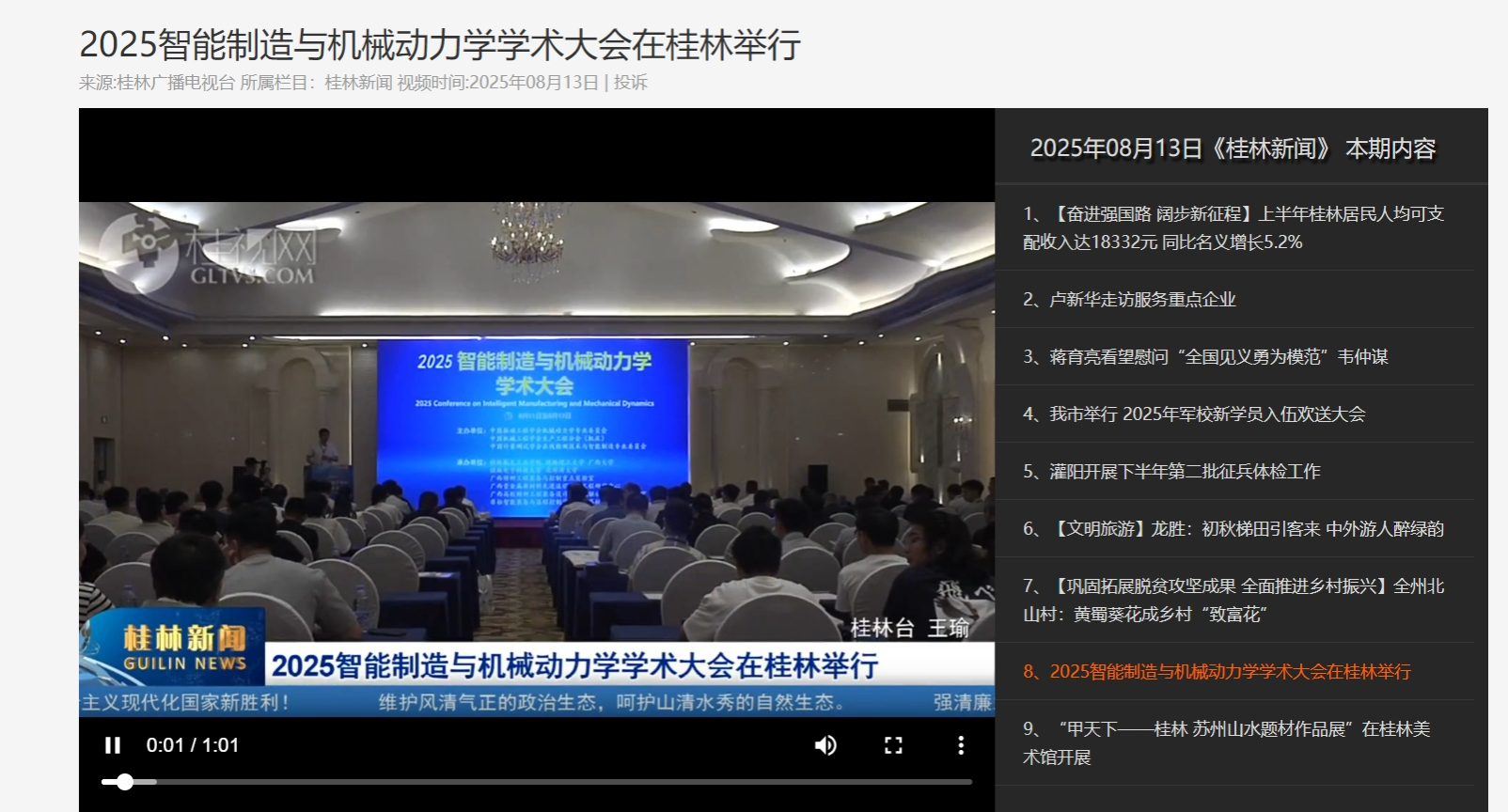 2025-08【桂林电视台】2025智能制造与机械动力学学术大会在桂林举行