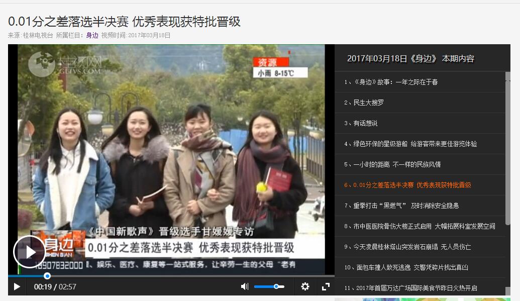 2017-03【桂林电视台】我校大学生晋级《中国新歌声》桂林赛区半决赛