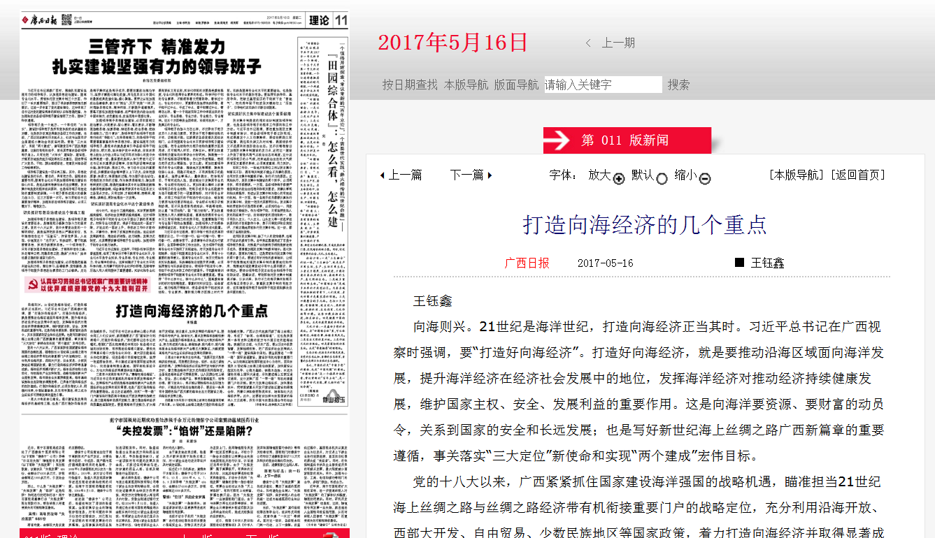 2017-05【广西日报】打造向海经济的几个重点