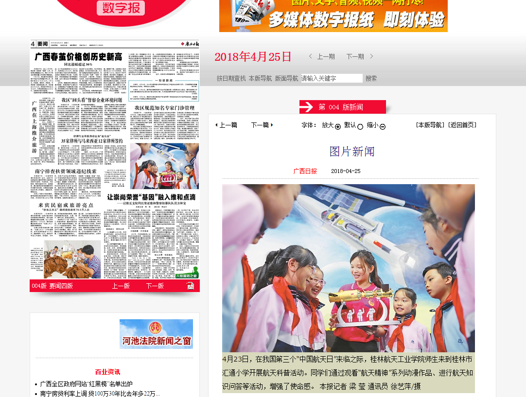 2018-04【广西日报】图片新闻报道我校航天科普活动