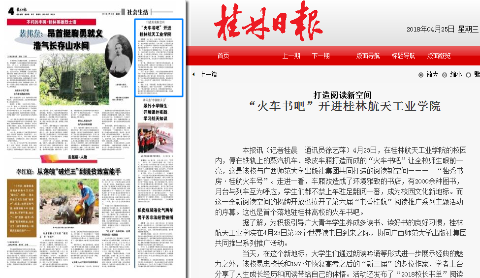 2018-04【桂林日报】打造阅读新空间“火车书吧”开进华体会平台