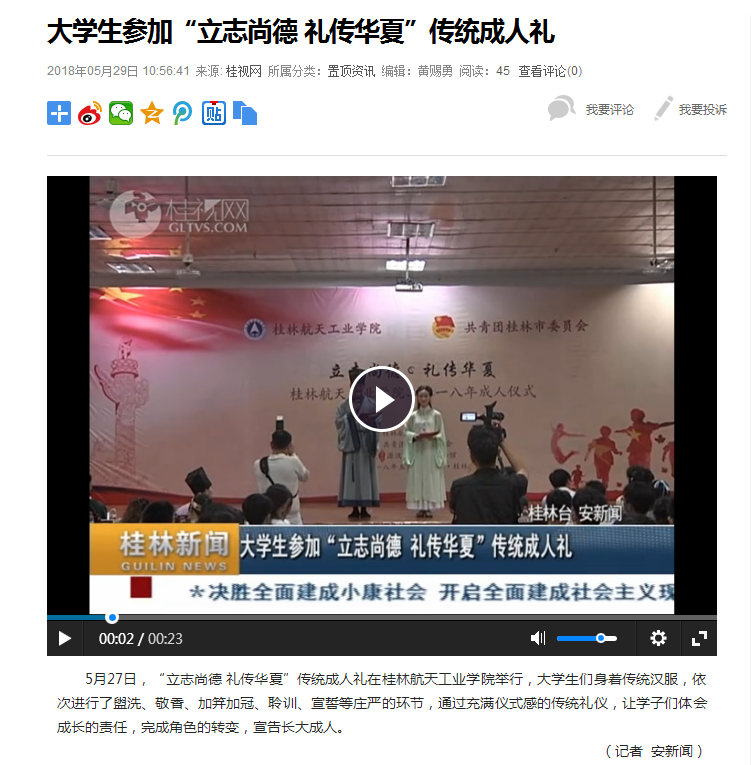 2018-05【桂林电视台】大学生参加“立志尚德 礼传华夏”传统成人礼
