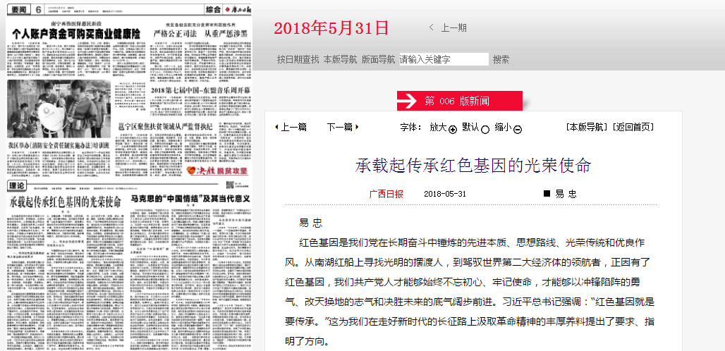 2018-05【广西日报】理论版发表易忠校长文章:承载起传承红色基因的...