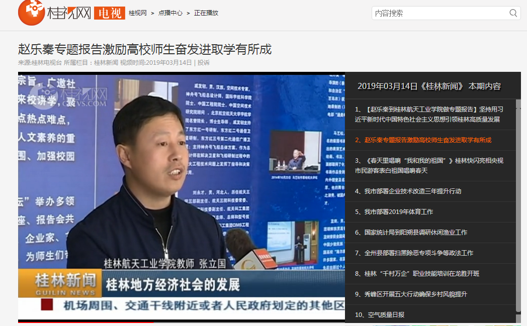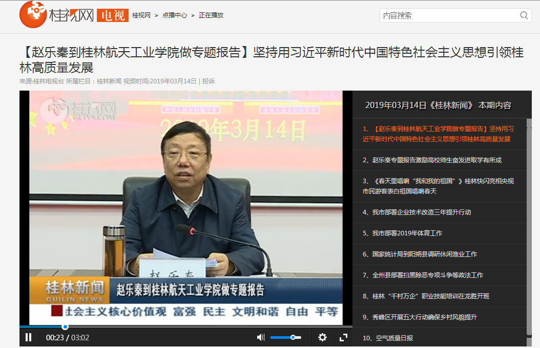 2019-03【桂林电视台】赵乐秦专题报告激励高校师生奋发进取学有所成