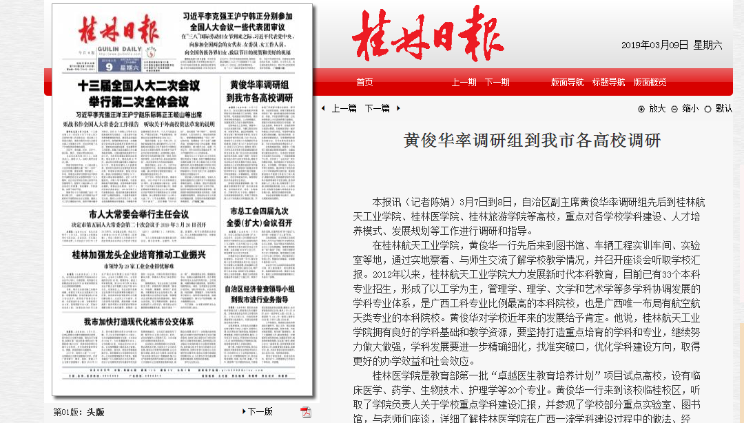 2019-03【桂林日报】黄俊华率调研组到我市各高校调研