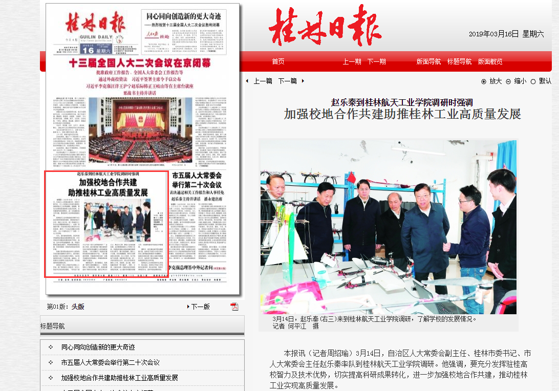 2019-03【桂林日报】赵乐秦到华体会平台调研时强调加强校地合...