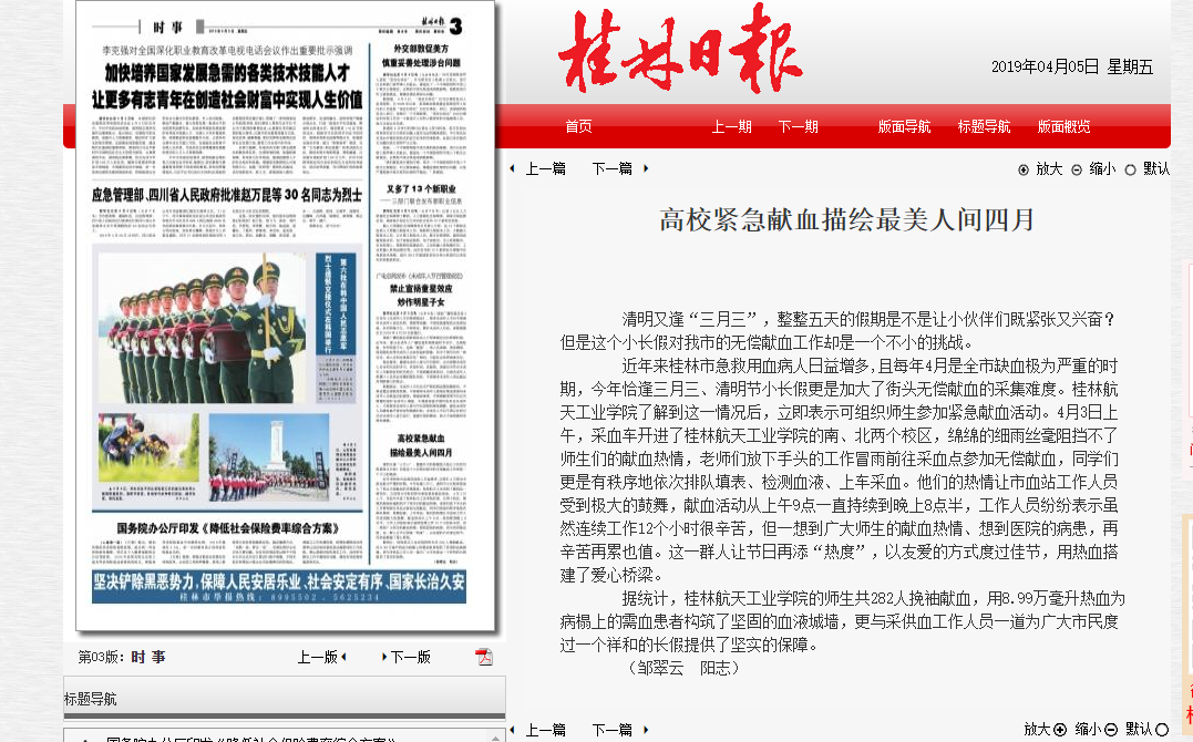 2019-04【桂林日报】高校紧急献血描绘最美人间四月