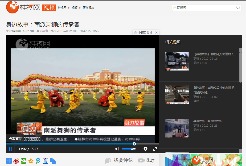 2019-04【桂林电视台】身边故事:南派舞狮的传承者