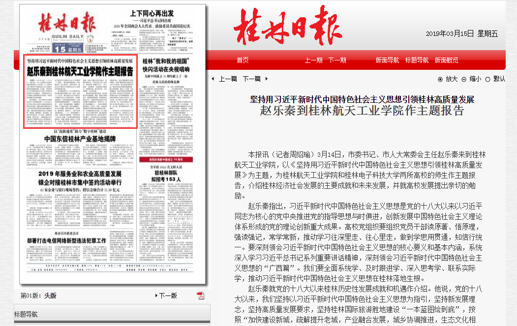 2019-03【桂林日报】赵乐秦到华体会平台作主题报告