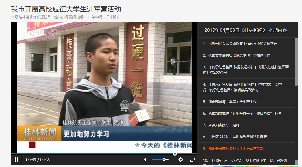 2019-04【桂林电视台】我市开展高校应征大学生进军营活动