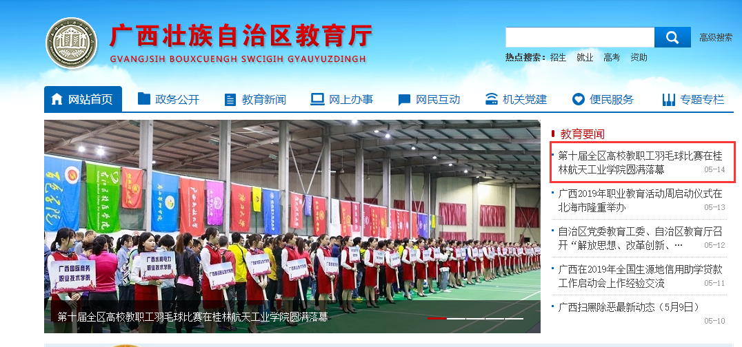 2019-05【中国新闻网】第十届广西高校教职工羽毛球比赛在桂林圆满落幕