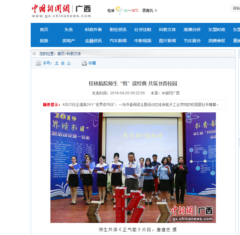 2019-04【中国新闻网】桂林航院师生“悦”读经典 共筑书香校园