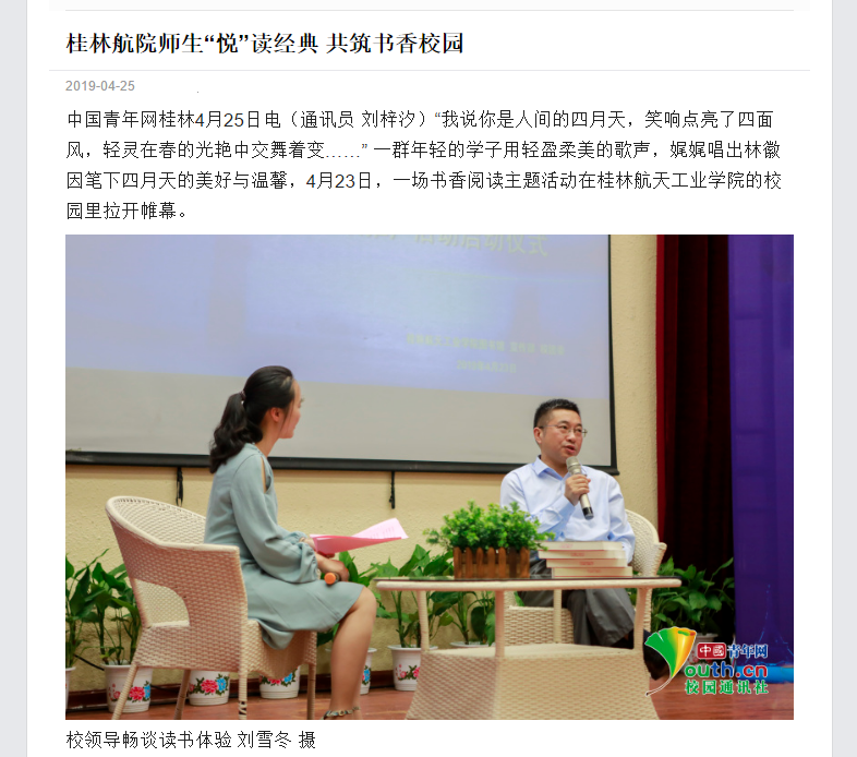 2019-04【中国青年网】桂林航院师生“悦”读经典 共筑书香校园