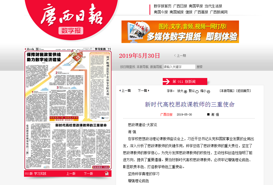 2019-05【广西日报】新时代高校思政课教师的三重使命