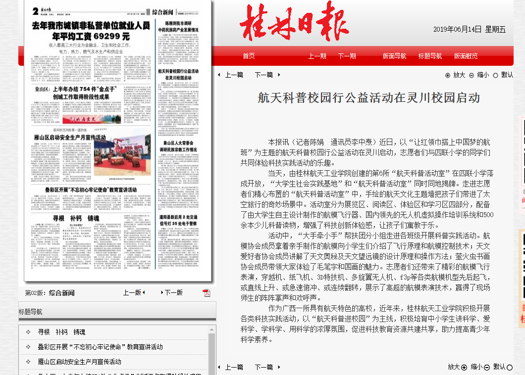 2019-06【桂林日报】航天科普校园行公益活动在灵川校园启动