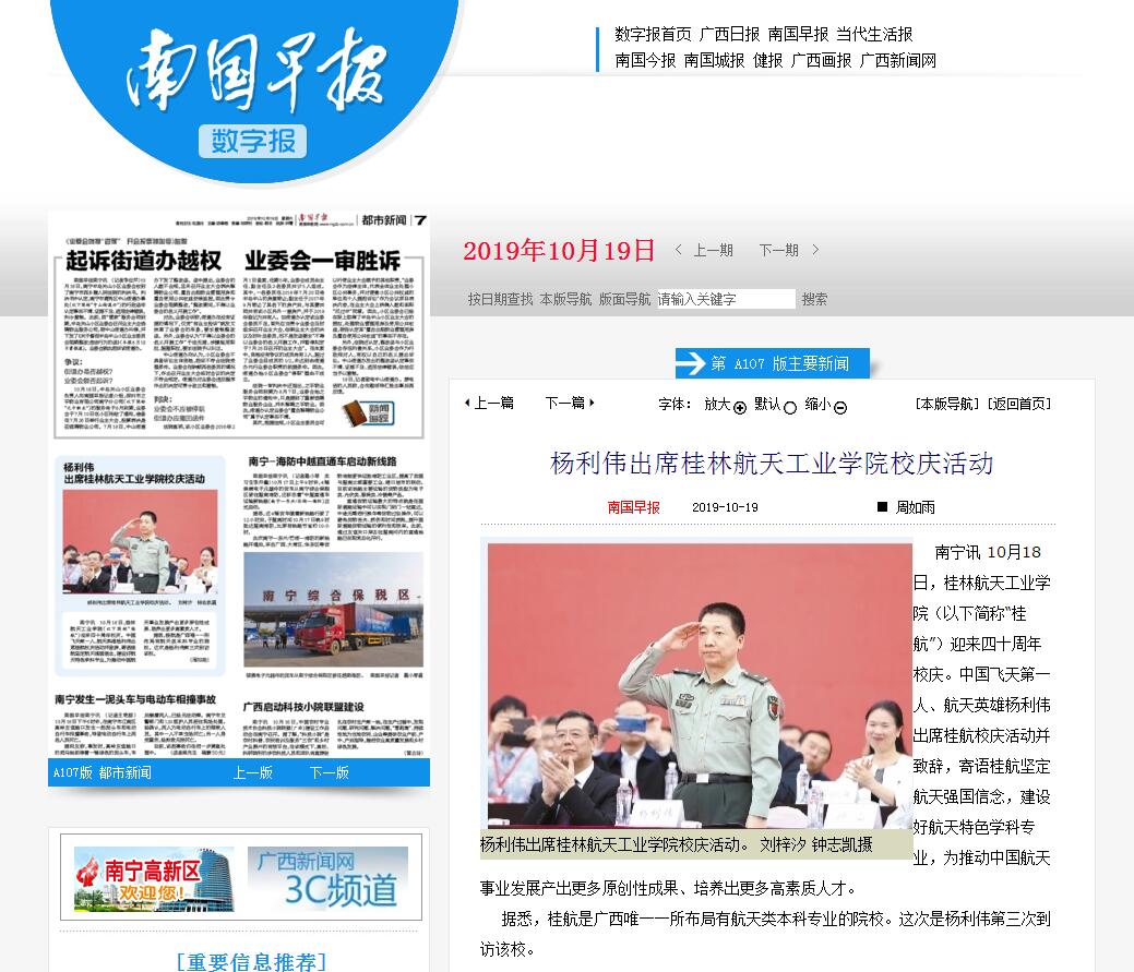 2019-10【南国早报】杨利伟出席华体会平台校庆活动