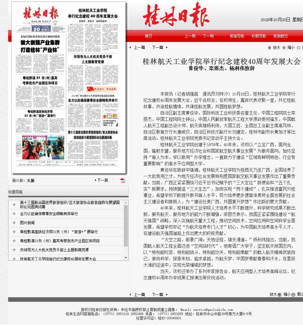 2019-10【桂林日报】华体会平台举行纪念建校40周年发展大会 黄...