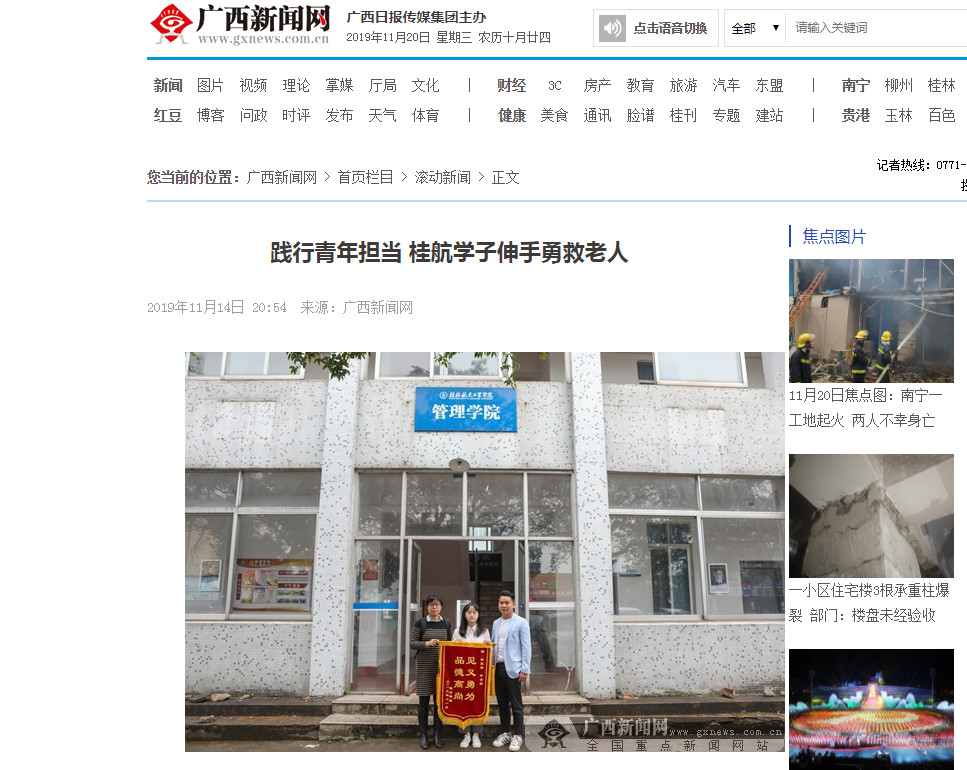 2019-11【广西新闻网】践行青年担当 桂航学子伸手勇救老人