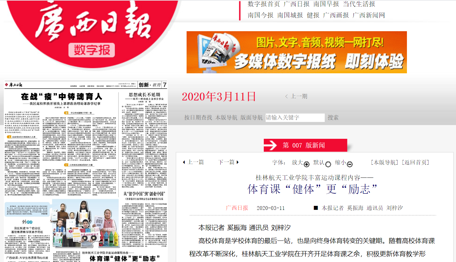 2020-03【广西日报】华体会平台丰富运动课程内容——体育课“...