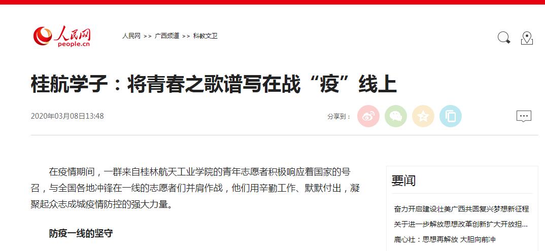 2020-03【人民网】桂航学子:将青春之歌谱写在战“疫”线上