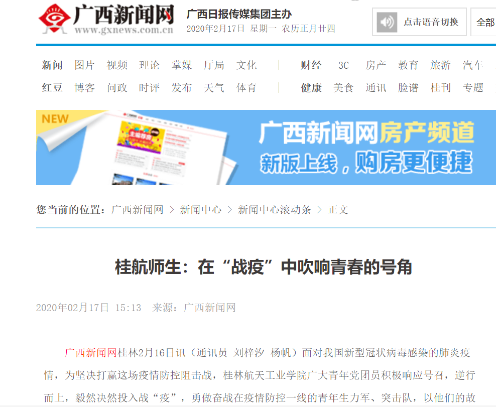 2020-02【广西新闻网】桂航师生:在“战疫”中吹响青春的号角