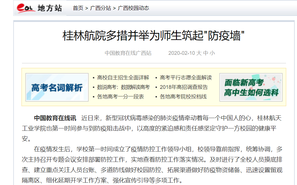 2020-02【中国教育在线】桂林航院多措并举为师生筑起"防疫墙"