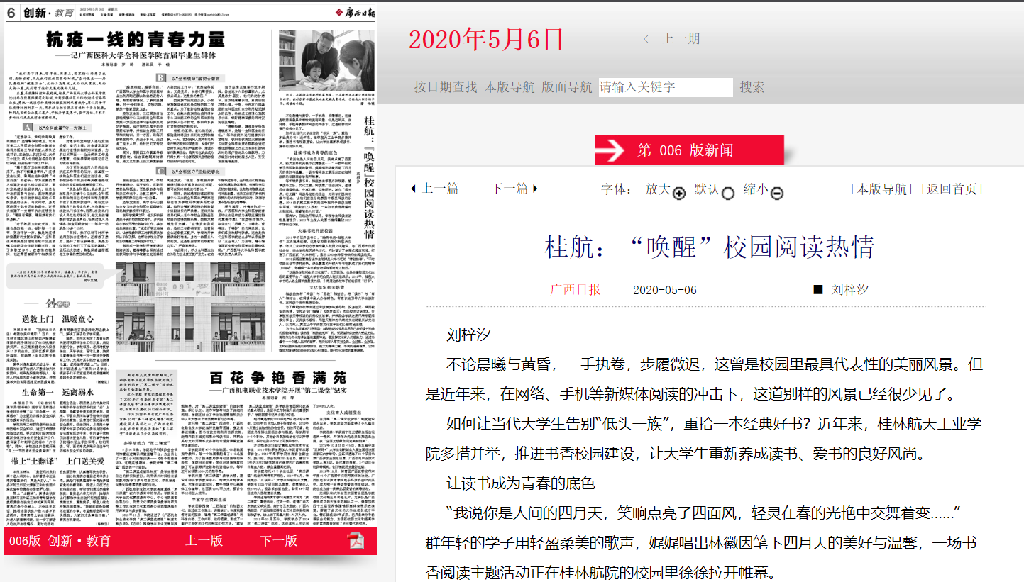 2020-05【广西日报】桂航:“唤醒”校园阅读热情