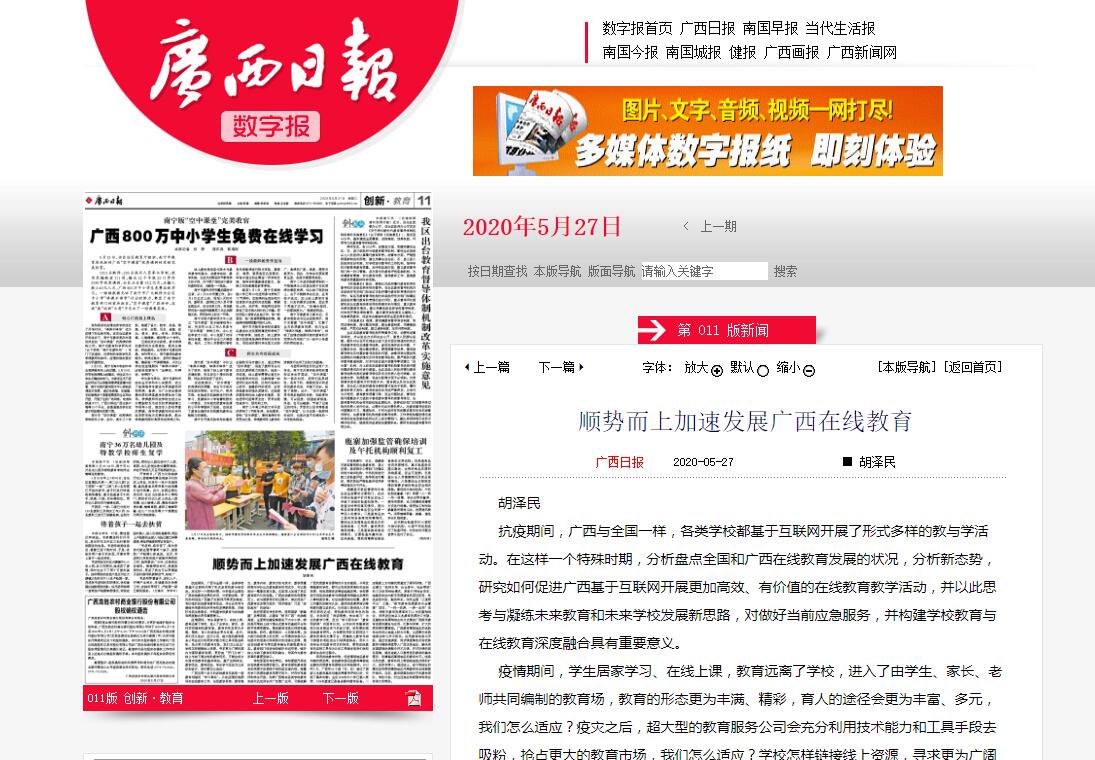 2020-05【广西日报】顺势而上加速发展广西在线教育
