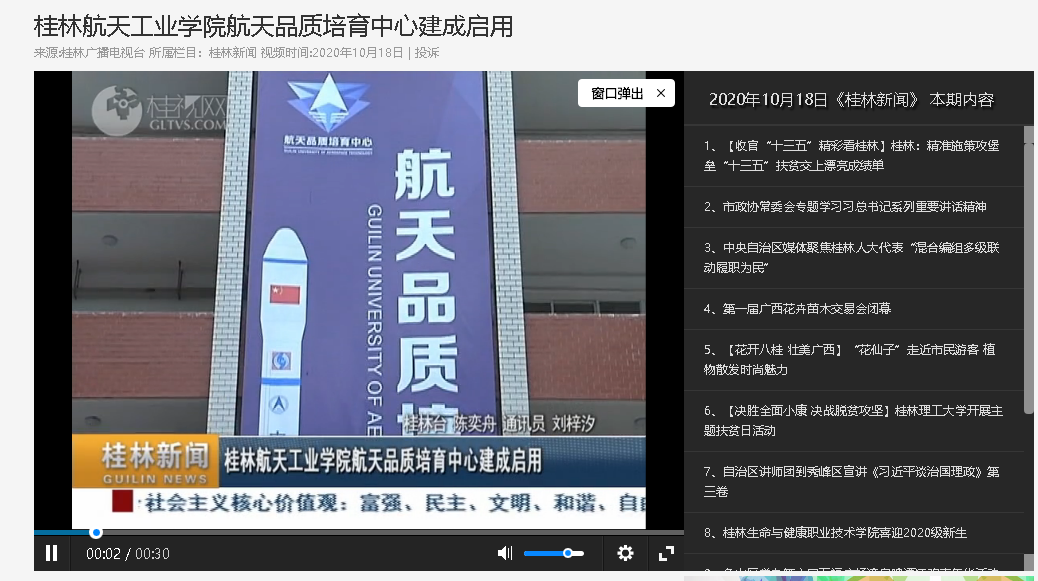 2020-10【桂林电视台】华体会平台航天品质培育中心建成启用