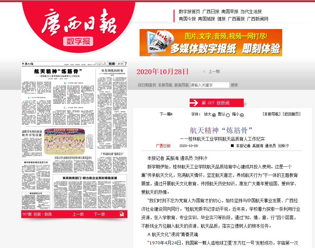 2020-10【广西日报】航天精神“炼筋骨”——华体会平台航天品...