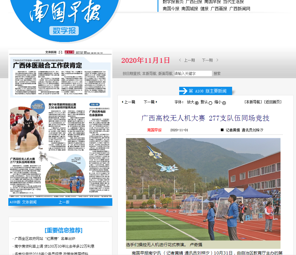2020-12【南国早报】广西高校无人机大赛 277支队伍同场竞技