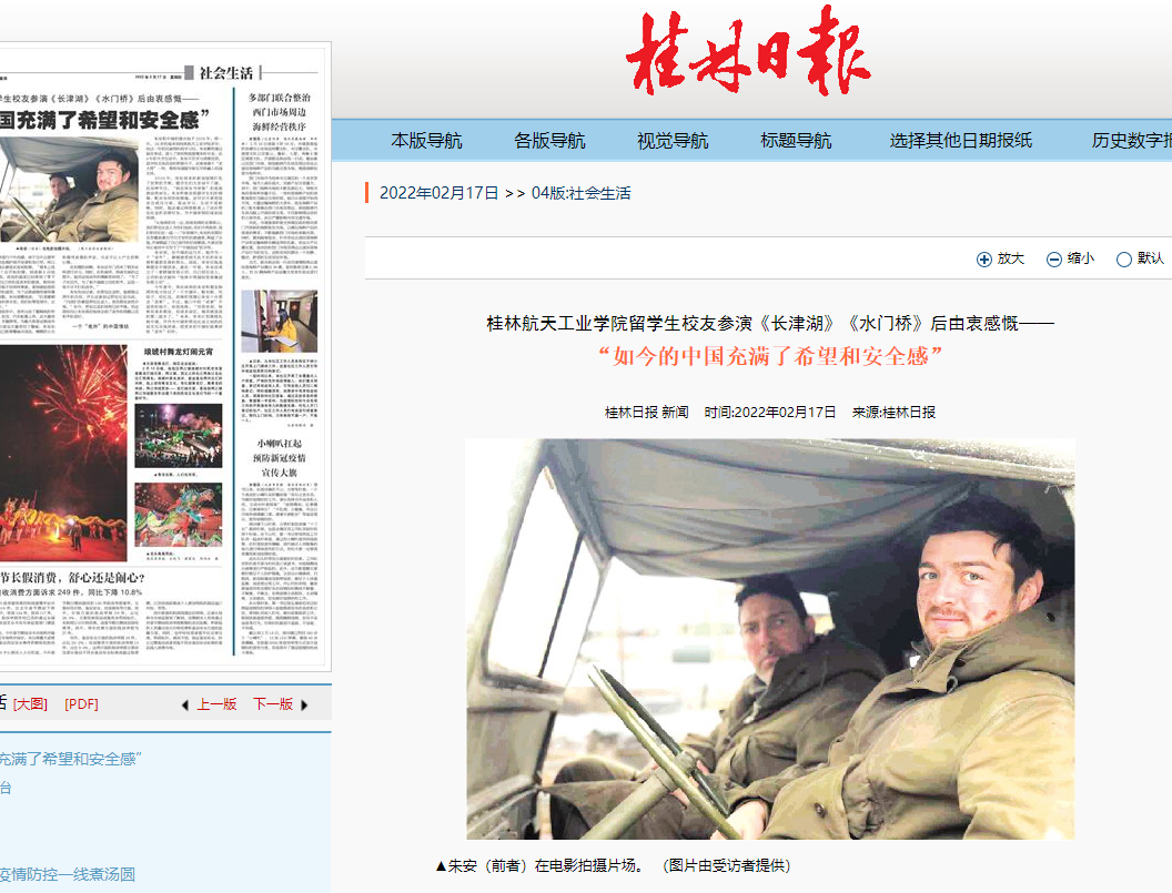 2022-03【桂林日报】华体会平台留学生校友参演《长津湖》《水...