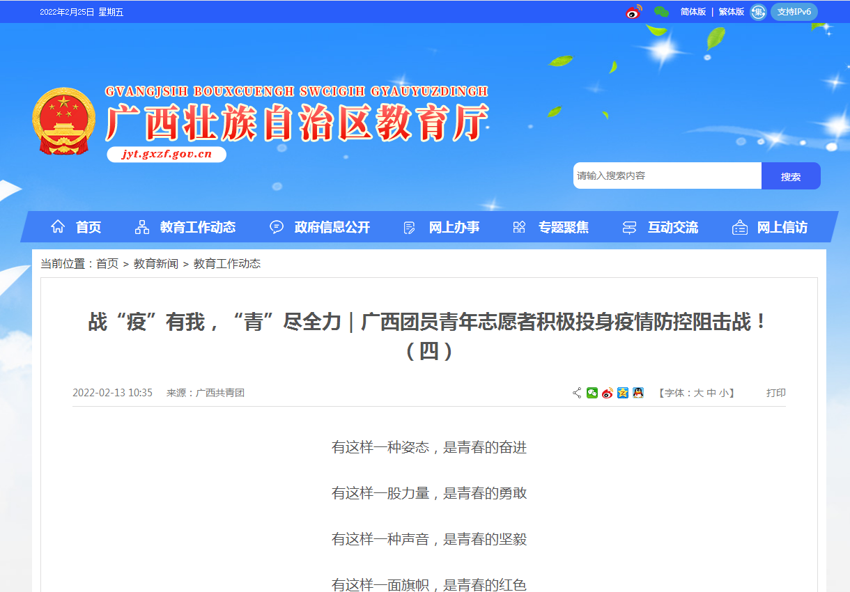 2022-02【自治区教育厅】战“疫”有我,“青”尽全力|广西团员青年...