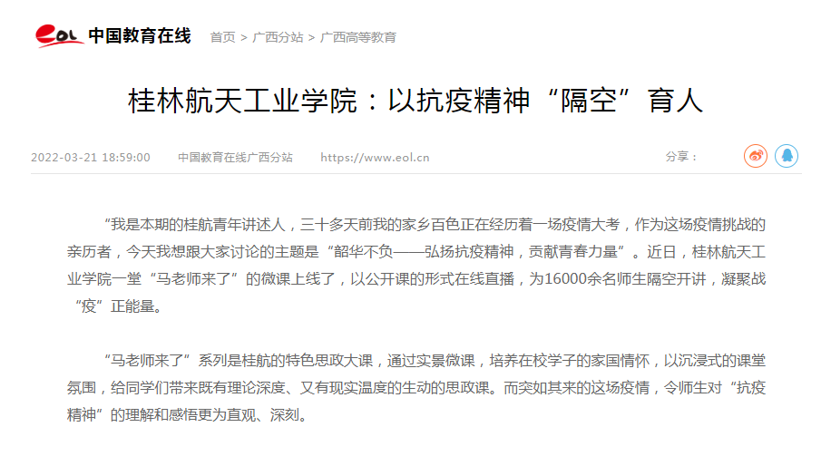2022-03【中国教育在线】华体会平台:以抗疫精神“隔空”育人