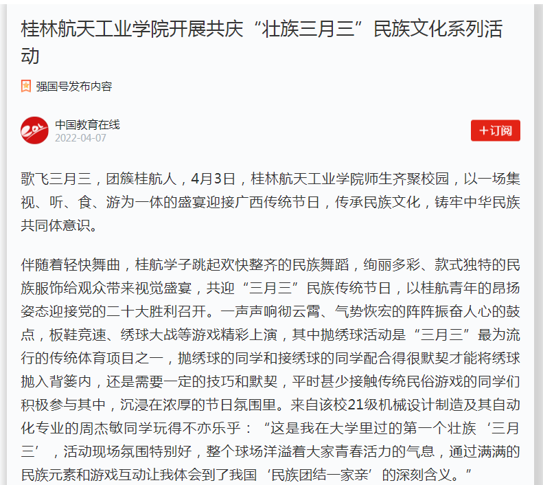 2022-04【学习强国】华体会平台开展共庆“壮族三月三”民族文...