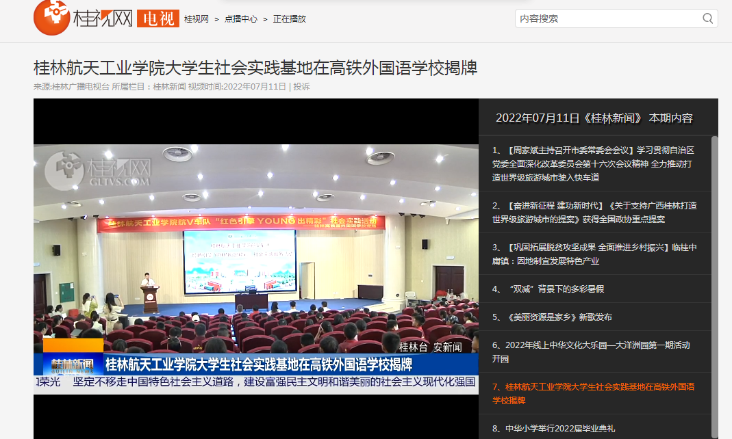 2022-07【桂林电视台】华体会平台大学生社会实践基地在高铁外...