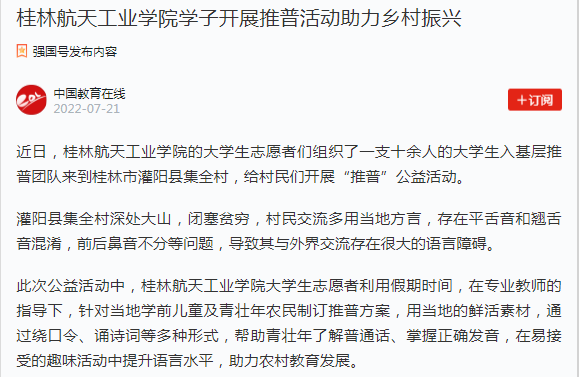 2022-07【学习强国】华体会平台学子开展推普活动助力乡村振兴
