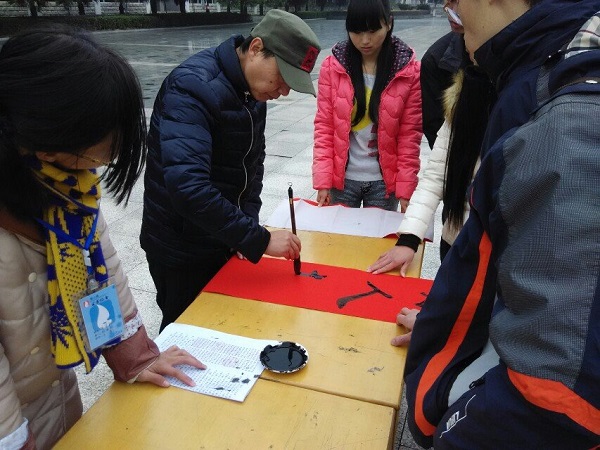 2014-12传播与设计系和萤火虫书画协会举办”迎新年送春联”活动