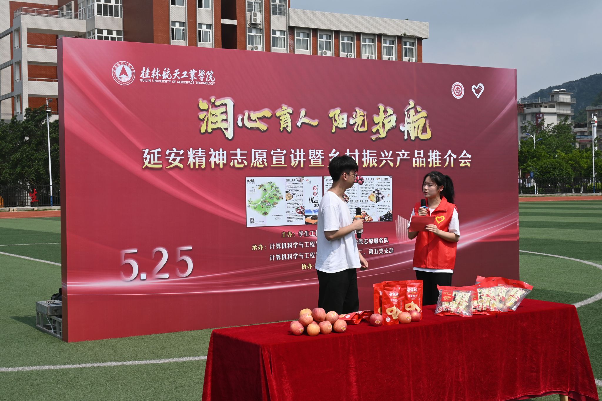 5月25日,全国大学生延安精神宣讲团华体会平台星火燎原志愿服务队联合计算机科学与工程学院学生第一、第二、第五党支部开展“延安精神宣讲暨乡村振兴产品推介会”主题党日活动,活动在学校风雨足球场举行,...